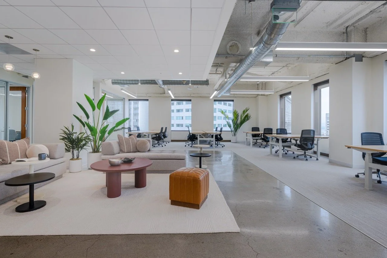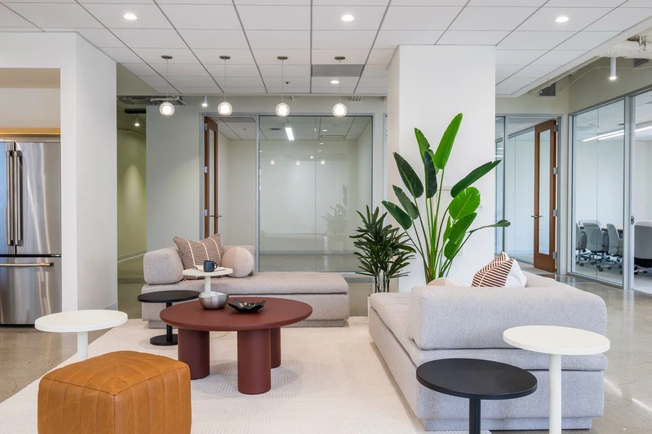 This creative office spans 11,500 square feet and was originally provided with sleek, modern furnishings, including breakout areas designed to support today’s workflow. However, despite these contemporary touches, the overall ambiance felt stagnant and in need of decorative elements to add color and warmth. By incorporating textured accents, warm hues, and greenery, the space has been transformed into an inviting and cozy environment perfect for those who thrive in a comfortable setting.